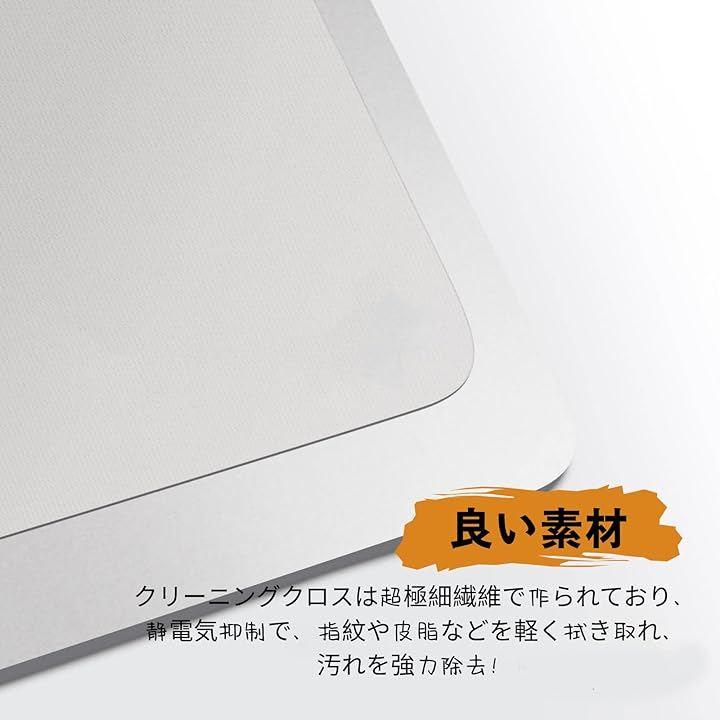 クリーニングクロスは超極細繊維(マイクロファイバー)で作られており、静電気抑制で、指紋や皮脂などを軽く拭き取れ、汚れを強力除去。抜群で柔らかい生地で液晶画面にキズを付けられないし、クロスを挟んたままで、フタを浮く感がありません。