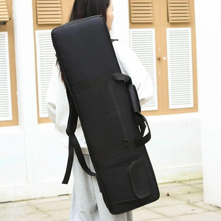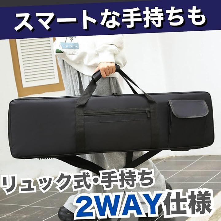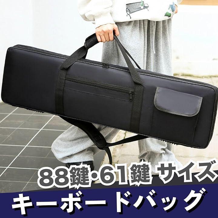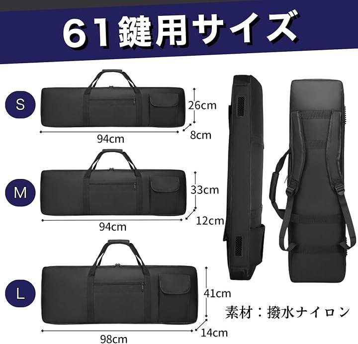 *サイズ:61鍵盤用(S/M/L)、88鍵盤用(ワンサイズ) *カラー:ブラック *素材:撥水ナイロン+厚手クッション *仕様:2WAY(手持ち・リュック)、ポケットx2、調整可能ショルダーベルト *用途:電子ピアノ、電子キーボード、楽器収納、ソフトケース、ピアノバッグ
