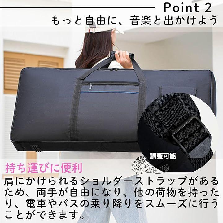 「商品内容」88鍵盤用サイズ:136cm x 17cm x 33cm/ポケットサイズ:18cm x 29cm 61鍵盤用サイズ:94cm x 12cm x 33cm//ポケットサイズ:18cm x 28cm 素材:オックスフォード生地(表地)シルク裏地(裏地)