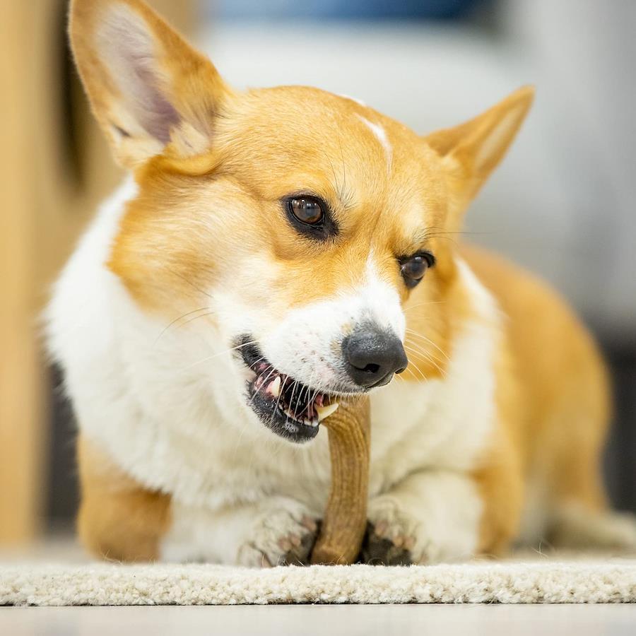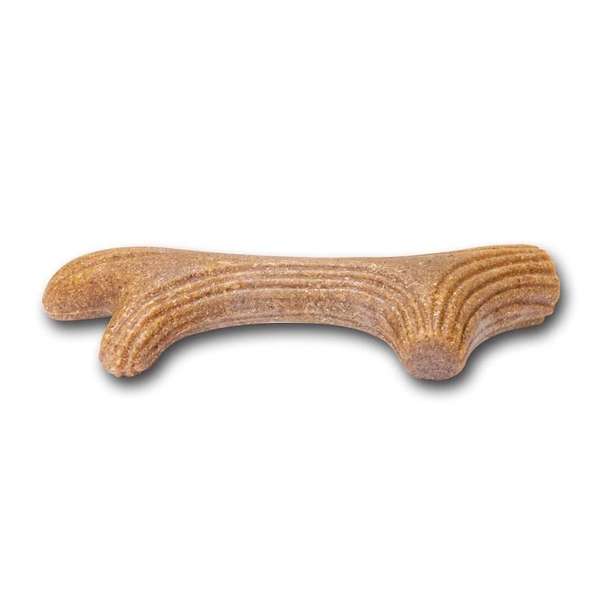 ●細かい天然木ファイバーを無毒性樹脂で固めた、噛むことが大好きな愛犬のためのデンタルトーイです。●夢中で噛んでも歯を傷めにくい硬さで、裂けたり割れたりすることなく細かく削れ、小さな破片を飲み込んでも体に害を与えずに排泄されるので安心して遊べます。●愛犬の歯が滑らず噛みやすい、表面の凹凸がしっかりついたリアルな鹿角の形状です。
