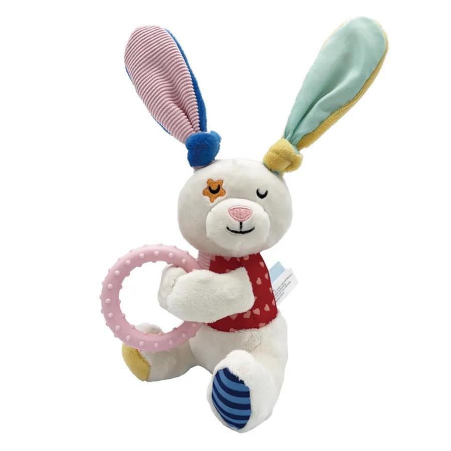材質:ポリエステル・EVA・TPE・PET生産国:中国サイズ:高さ25cm x 幅14cm x 奥行10cm重量/容積:85gおなかにスクィーカー(鳴笛)、噛み心地の違うカシャカシャ音のするクリンクルやラバーリング、タグなどがついています。