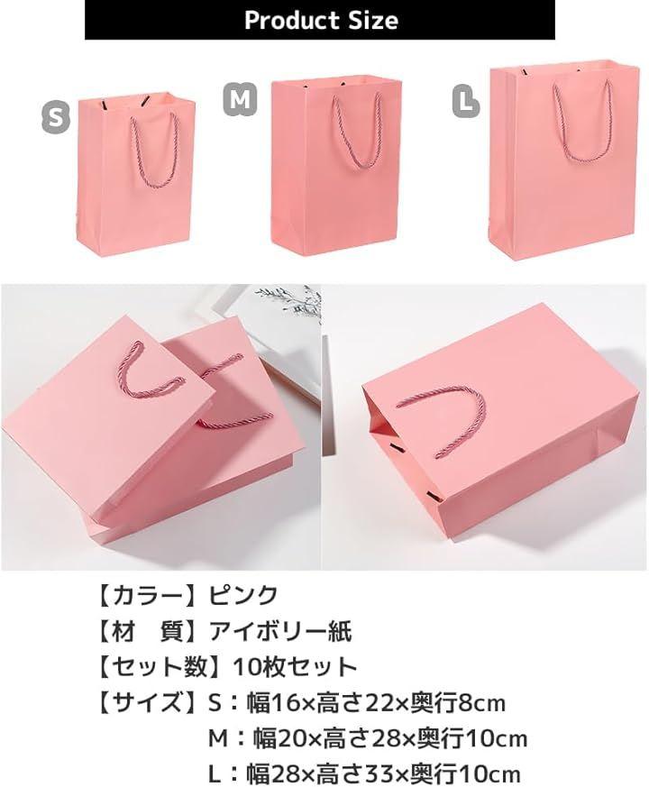 「カラー」ピンク「材質」アイボリー紙「セット数」10枚セット「サイズ」S:幅16x高さ22x奥行8cm、M:幅20x高さ28x奥行10cm、L:幅28x高さ33x奥行10cm