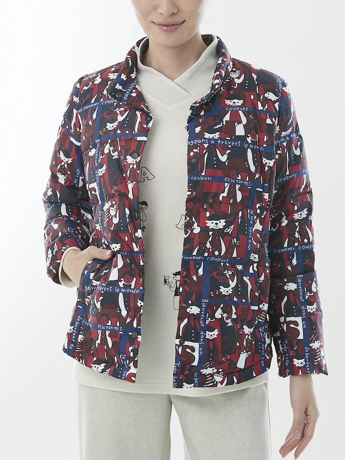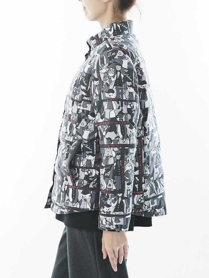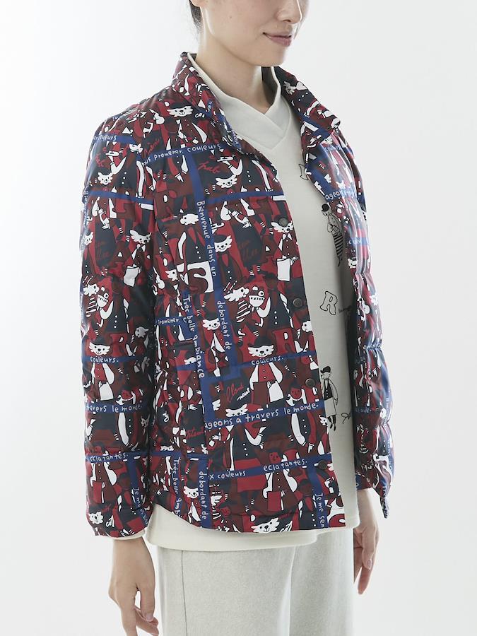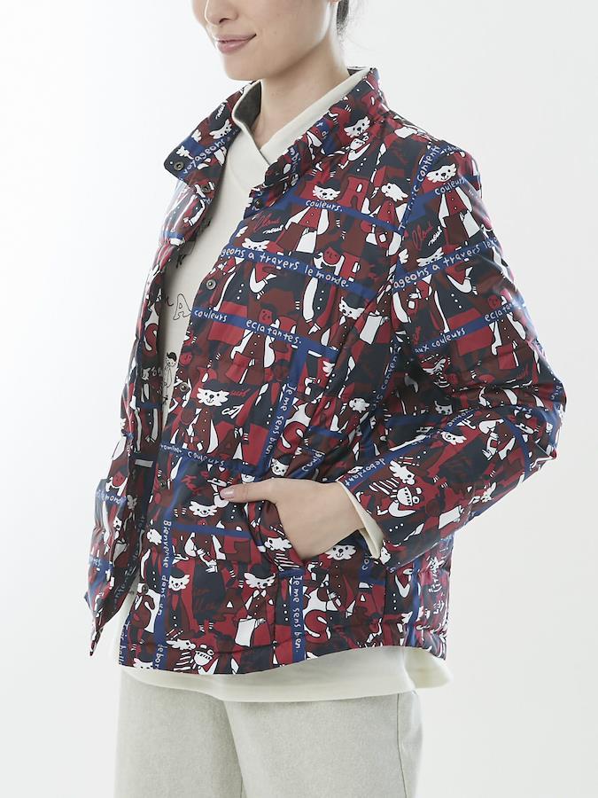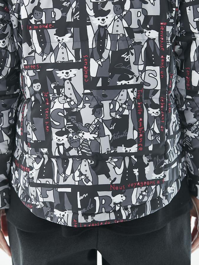 ソフトな風合いのポリエステルタフタをプリント下にしています。ギャルソンとトピィーちゃんをミックスさせた、楽しいプリントです。 (size-40 肩幅41cm バスト114cm 袖丈59cm 着丈63cm) サイズは多少の個体差が生じる可能性があります