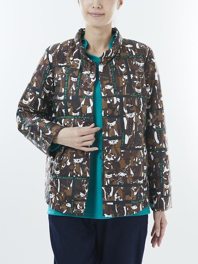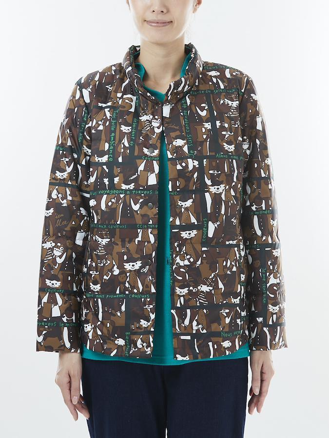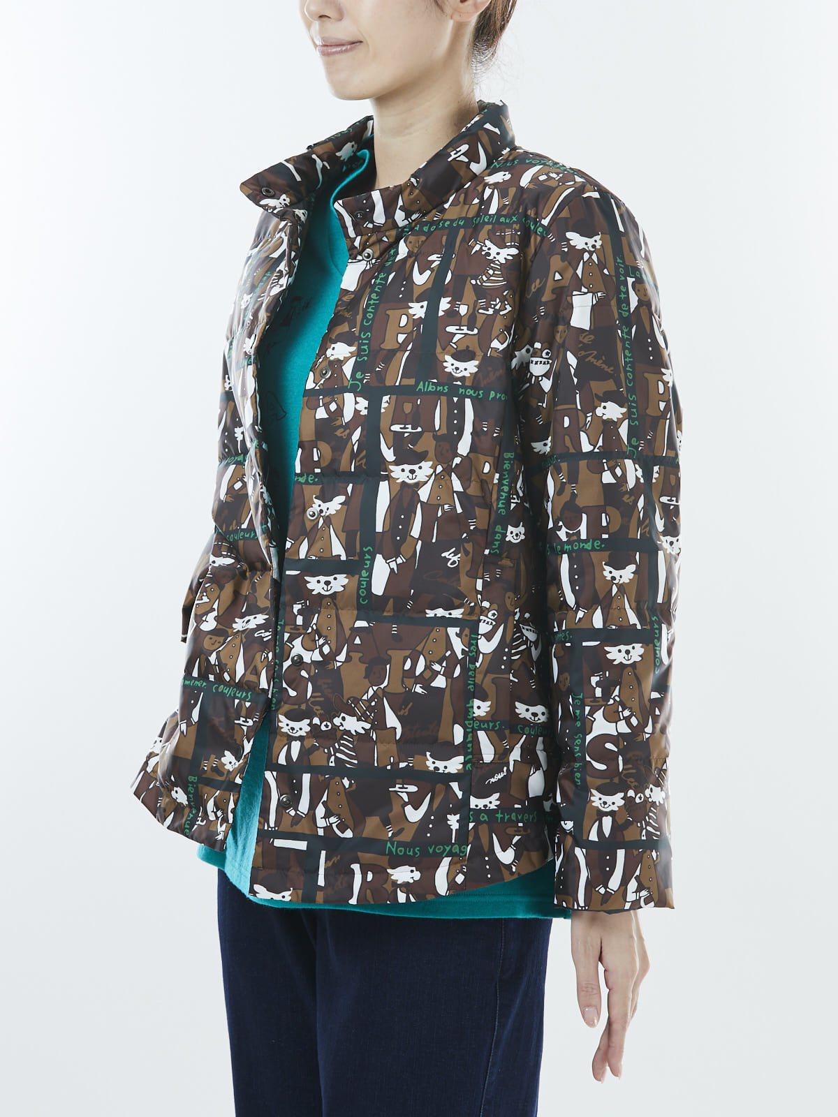 ソフトな風合いのポリエステルタフタをプリント下にしています。ギャルソンとトピィーちゃんをミックスさせた、楽しいプリントです。 (size-40 肩幅41cm バスト114cm 袖丈59cm 着丈63cm) サイズは多少の個体差が生じる可能性があります