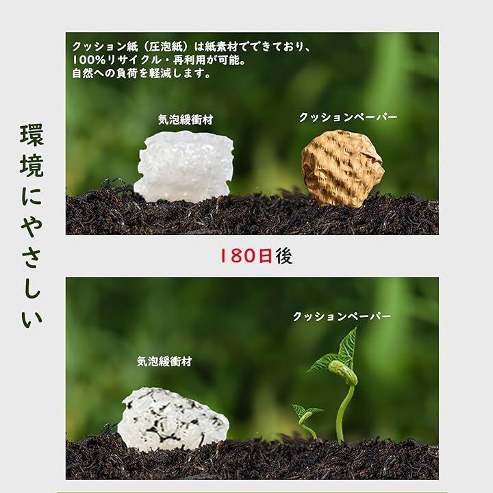 「環境に優しい」この紙製クッションペーパーは、生分解性があり、使用後は家庭ごみとして簡単に廃棄可能です。