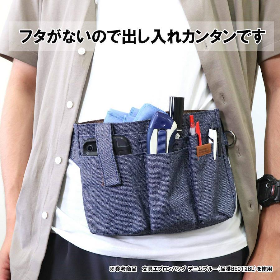 ・働く女性のための文具エプロンバッグ。・フタがないからエプロンのポケットのように出し入れ簡単。・作業するとき使いやすい。・薄型タイプでジャマにならない。・エプロンのポケットに小物をいれるみたいに文房具や小物を入れて使える、作業時にぴったりのバッグです。・かさばらないスリムタイプの為、そのままかばんに入れて持ち運び、作業現場で取り出して使うことも出来ます。・用途:仕事、家事、外出、ホビー、クラフト、アウトドア、ガーデニングなど、販売、倉庫作業など・・