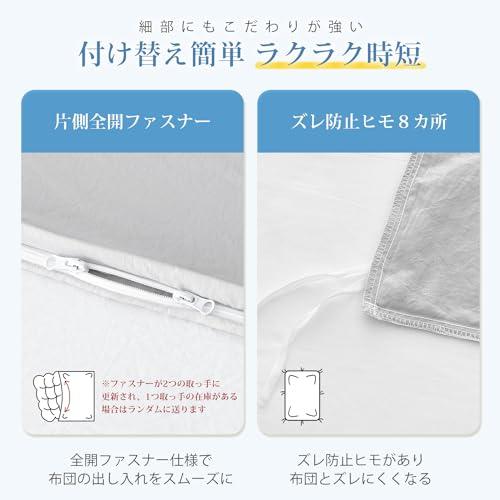 ? 写真は実物と同じように撮影されます。撮影中の光とモニターの解像度が異なるため、多少の色の違いは品質上の問題ではございませんので、ご了承頂けない方は慎重にご検討下さい。?Kumori・品質保証?? 万が一商品に不具合(初期不良など)がある場合は、お気軽に当店([email protected])までにご連絡ください。 【商品情報】素材 -ポリエステル100%(ピーチスキン+洗いざらし) 仕様 -片側に全開ファスナー使用・布団留めひも8ヶ所付き 生産国 -中国 【肌にやさしい生地】薄く軽やかで肌触りの良い材質を使用しています。やわらかな風合いを生かすために、洗いざらしで仕上げました。毛玉やほつれができにくく、使ううちに柔らかくなります。 【手触りなめらかなピーチ起毛生地】表面に桃の皮のような微起毛を施しており、ポリエステル素材ながら天然繊維のような滑らかさを実現しました。 【季節を問わず】優れた吸湿性と通気性で、汗でもベタつかないサラサラ感を保ちます。肌に触れるとしっとりして気持ちよく、毎日快適に眠れて、一年中お使いいただけます。 【簡単洗濯】洗濯ネットを使えば、気軽にじゃぶじゃぶ洗えます。いつでも清潔にご使用いただけます。