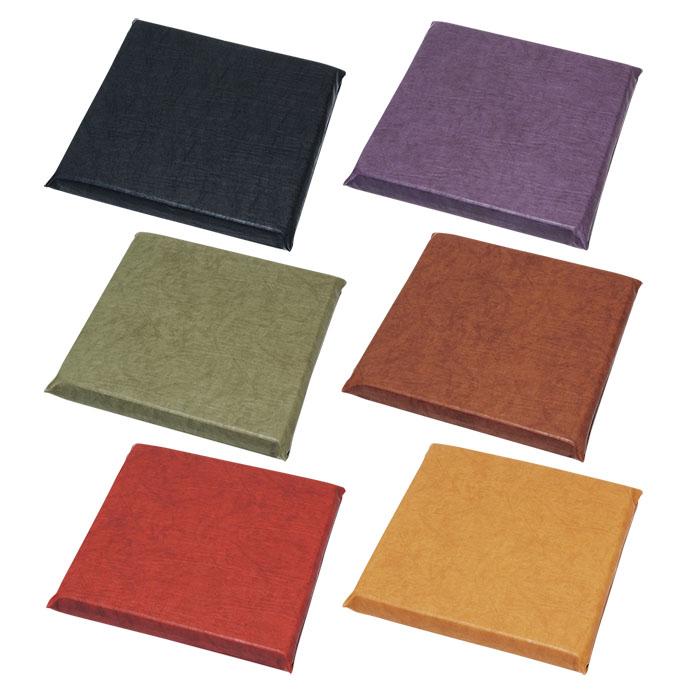 高級感のあるPVCレザー生地でカラフルな6色の座布団を製作しました。表面にシワのようなシボ(凹凸)加工を施し、シンプルかつベーシックな中にも落ち着いた高級感がある風合いで、水や汚れへのメンテナンスも容易です。また中味に弾力のあるウレタンを入れており非常に軽くて嵩張らず、持ち運びや保管にも便利です。【製品サイズ】 47㎝×47㎝×厚み4㎝【中味】 ウレタン100%【生地素材】 PVCレザー100%(※厚みのある国産PVCレザー使用)この商品はウレタン中材とセットです(カバーはファスナー加工)。またカートの購入可能数より多い数をご希望の場合はご相談ください。