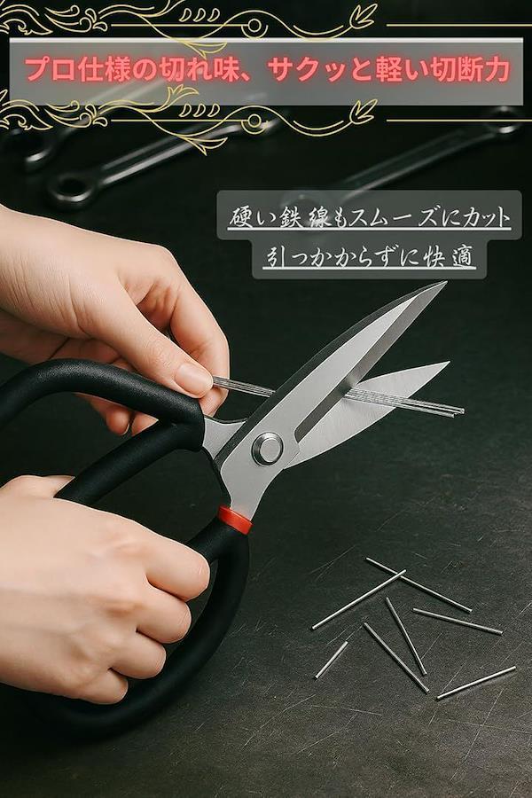 レザークラフトに最適な革切りハサミで、厚革や細部も滑らかにカットでき、握りやすい樹脂グリップと錆びにくい高耐久素材で長く使える一本です。