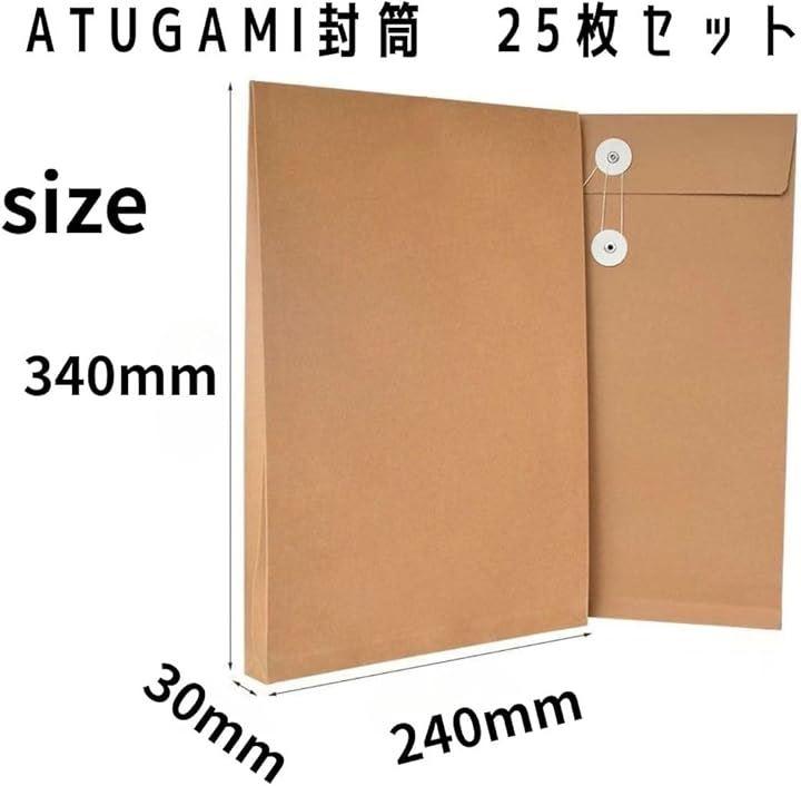 商品内容:厚手クラフト紙を使用した紐留め式のファイルバッグでサイズ340x30x240mmの大容量タイプが25枚入ったセットです。