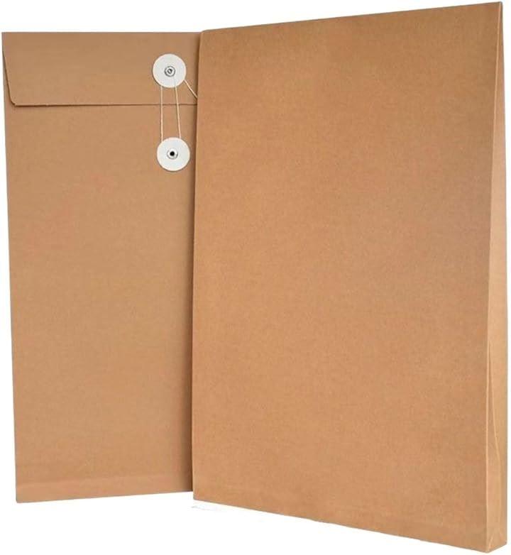 Heavy-Duty Kraft Paper File Bags with Drawstring Closures, Set of 25, Durable Envelope-Style Document Storage Bags with Large Capacity