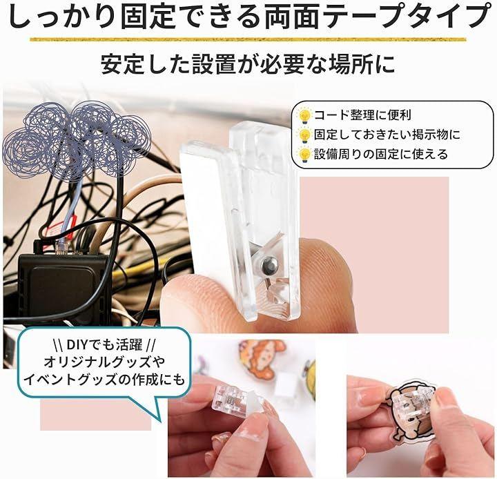 両面テープ付きタイプは、より安定した固定を求める場合に適しており、コード整理や掲示物の設置に役立ちます。