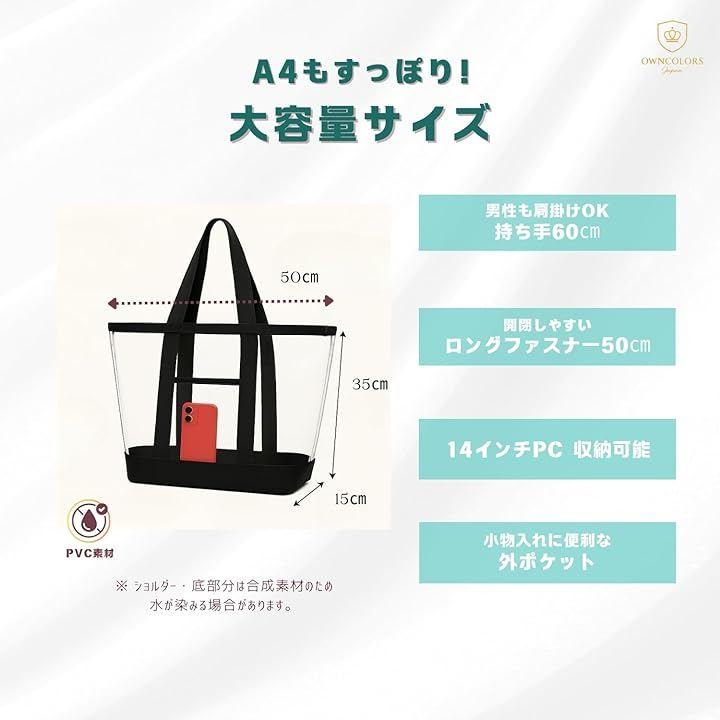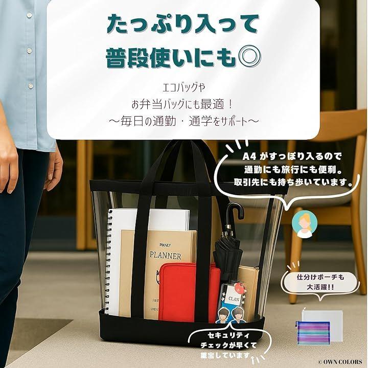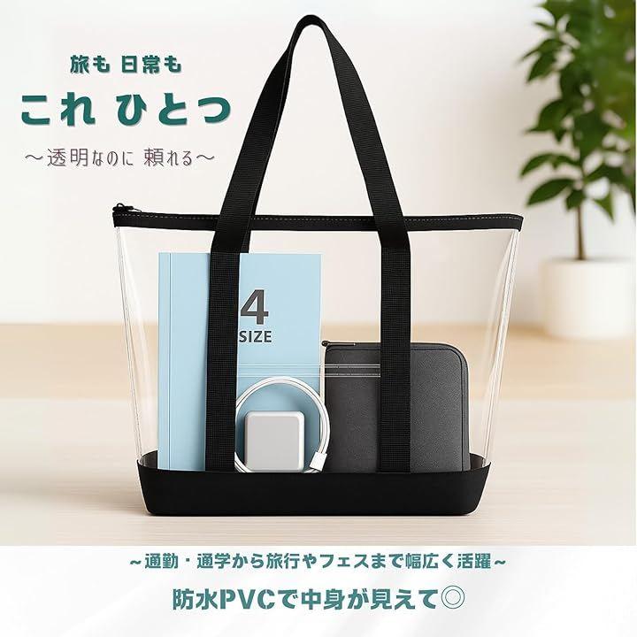 旅にも、日常にも、これひとつでOK/ A4サイズもすっきり入る、大容量クリアトートバッグ。