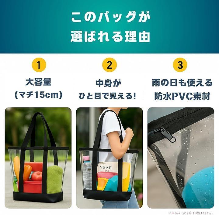 「様々な場面で役立つクリアトート」 晴れた日の買い物も、海辺のバケーションも、 そして 熱気あふれるフェスやライブ会場でも。