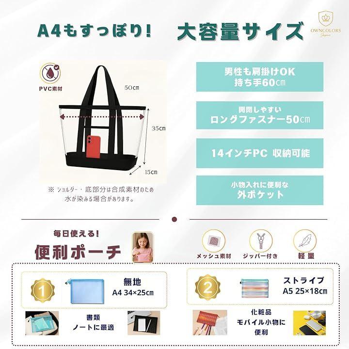 軽くて丈夫なPVC素材を使用し、旅行・フェス・プール・通勤・通学まで幅広く活躍。