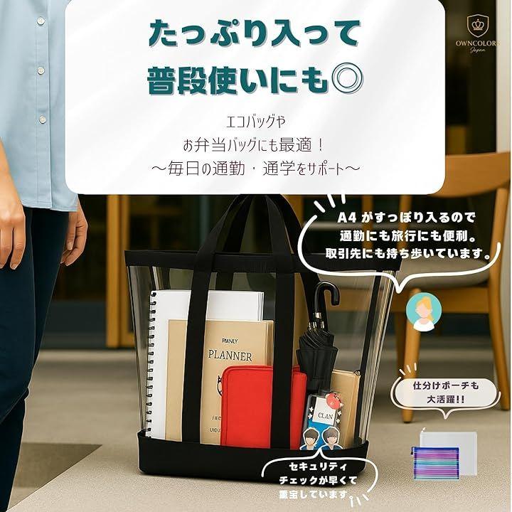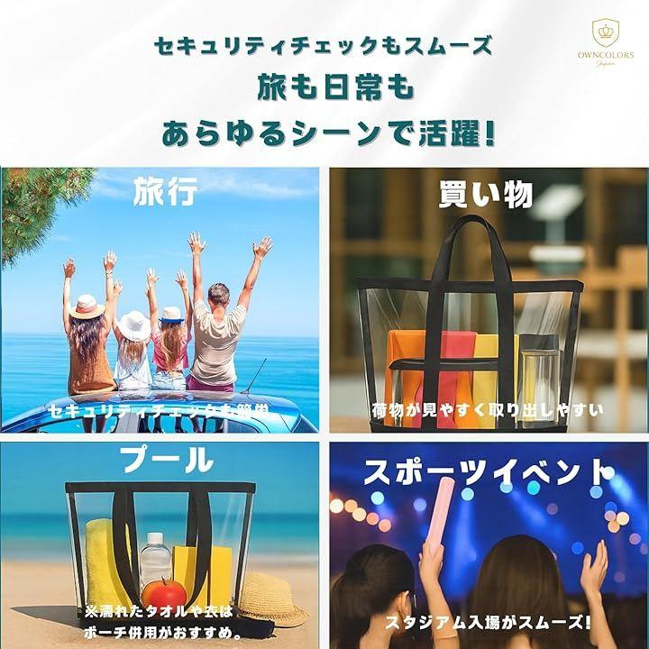 透明デザインで中身が見やすく、セキュリティチェックもスムーズです。