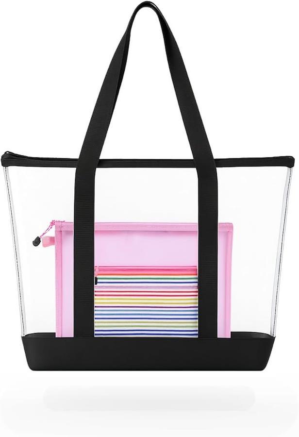 透明デザインで中身が見やすく、セキュリティチェックもスムーズです。