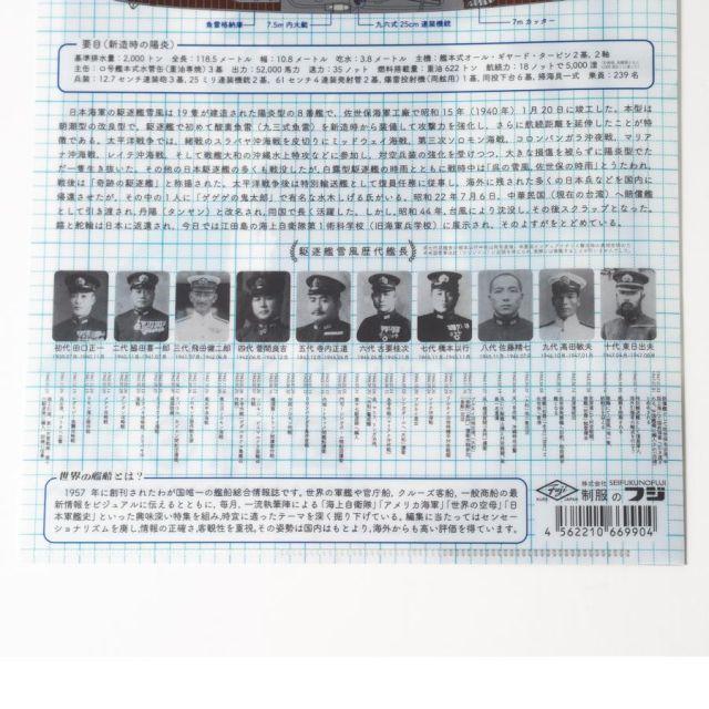 商品名:クリアファイル ( 雪風 ) 世界の艦船 バージョン 大日本帝国海軍 海軍 グッズ クリアフォルダー A4 A4サイズ 雑貨 文具 文房具1957年に創刊された日本唯一の艦船総合情報誌『世界の艦船』と、海上自衛隊の制服・グッズを手掛ける「制服のフジ」とのコラボで誕生した「駆逐艦雪風」のクリアファイル。老舗専門誌ならではの圧倒的なデータで多くのファンを魅了する『世界の艦船』だからこそ実現した、クリアファイルとは思えないほどの驚きの情報量!!激戦を生き抜いた日本海軍唯一の幸運艦として、今もなお愛され続ける「駆逐艦雪風」。その要目はもちろん、歴代艦長や年表など、ありとあらゆる情報を網羅しているので読み応えも抜群です。■『世界の艦船』とは■1957年に創刊されたわが国唯一の艦船総合情報誌。世界の軍艦や官庁船、クルーズ客船、一般商船の最新情報をビジュアルに伝えるとともに、毎月、一流執筆陣による「海上自衛隊」「アメリカ海軍」「世界の空母」「対潜水艦戦」といった興味深い特集を組み、時宜に適ったテーマを深く掘り下げている。編集に当たってはセンセーショナリズムを廃し、情報の正確さ、客観性を重視。その姿勢は国内はもとより、海外からも高い評価を得ている。●大きさ:A4用(310×220mm)・厚み0.2mm●材質:PP商品番号:G2008