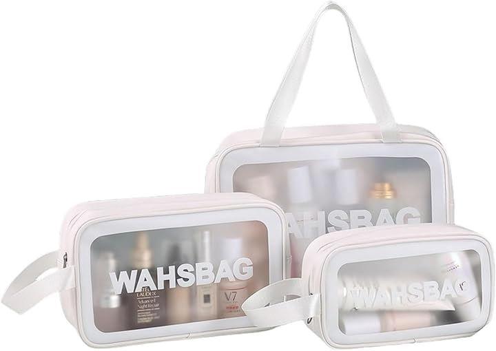 3-Piece Clear Pouch Set for Makeup, Cosmetics, Waterproof, Large Capacity, Translucent PVC Storage, Sauna Bag, Hot Springs, Spa, Travel, Outdoors