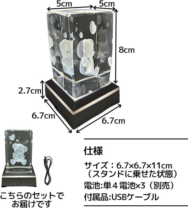 LEDライトで3Dアートが輝き、かわいいクマが心に癒しを与えます。