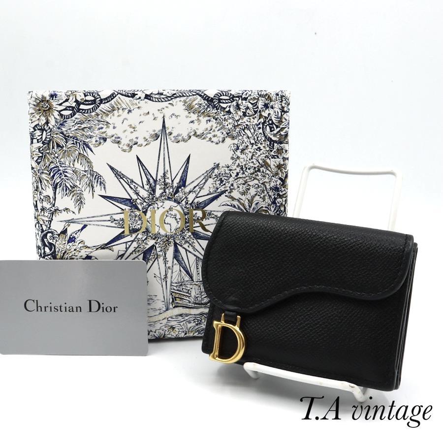品名 ディオール レザー サドル 折り財布 ブラック ゴールド金具