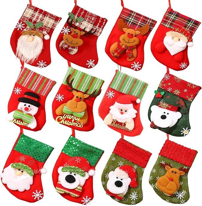 ■商品名クリスマスの靴下 12枚セット クリスマス ソックス 3D 立体 靴下 サンタクロース 雪だるま 熊 トナカイ クリスマスツリー 暖炉飾り クリスマスプレゼント 新年祝い 飾り 可愛い プレゼント袋 ギフトバッグ お菓子 キャンディなど入れ 壁掛け 装飾