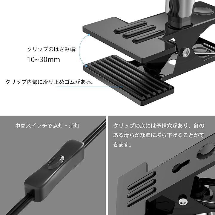 「簡単取り付け使用」配線不要で、クリップをテーブル、物置棚、ブラケットなどに挟み込むだけで、挟むだけで取り付けが完了します。