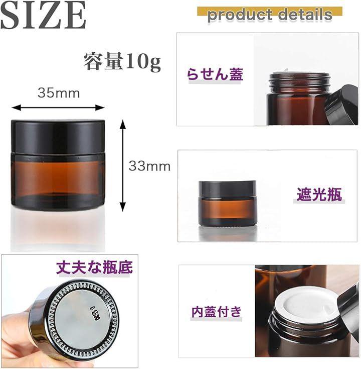 「商品内容」本体:20個入 容量:10g サイズ:直径35mm、高さ33mm カラー:ブラウン 材質:ガラス、ABS 付属:ハンドプル付きガスケット(中蓋) *自社にて検品はしっかり行なっておりますが、どうしても製造上の都合で外蓋に小傷等ができてしまう場合がございます。