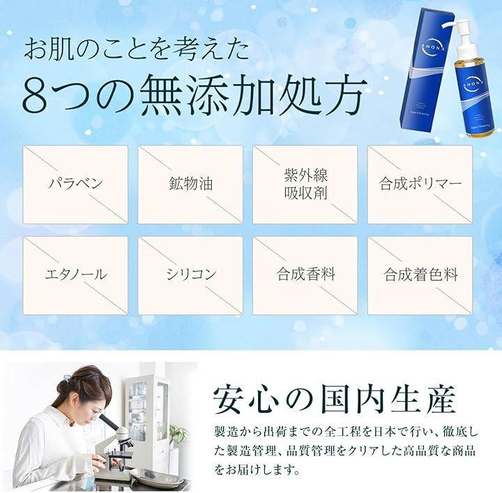 「 濡れた手・風呂 OK 」化粧落としには石鹸やクレンジングクリームなど様々ありますが、メイク落としも毛穴もスッキリできる日本製のAMONAの美容オイルクレンジングをお試しください。