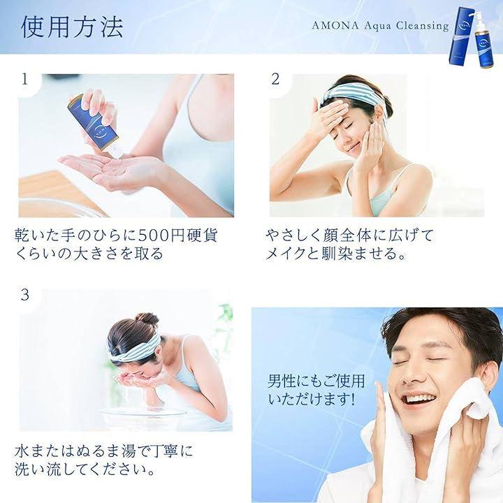 ヒアルロン酸、コラーゲン、3種のセラミド、ビタミンC誘導体、生プラセンタを配合し、AMONAはオーガニックな理想的な保湿力にこだわり、天然由来成分99%以上にこだわりながら、するっとしたメイク落ちを目指しました。