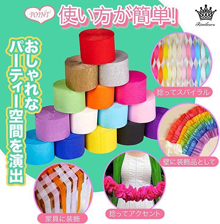 ・幅広い用途で使える:シンプルでおしゃれなクレープ紙になっておりますので、誕生日やパーティー、結婚式、お部屋の装飾やアートフラワーとして、手芸・クラフトなどのDIYを楽しめたりなど様々な用途でご使用いただけます。