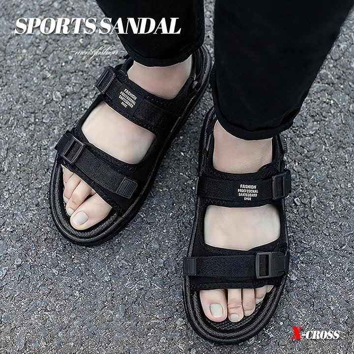 Cross sandals for men, fashionable, summer, sports, outdoor wear, easy to wear, flat, easy to walk in, outdoor, beach, thick sole, comfort, outdoor, rubber sole, non-stuffy, breathable, office, indoor, strap, walking, beach, travel, resort, travel, pool, fishing