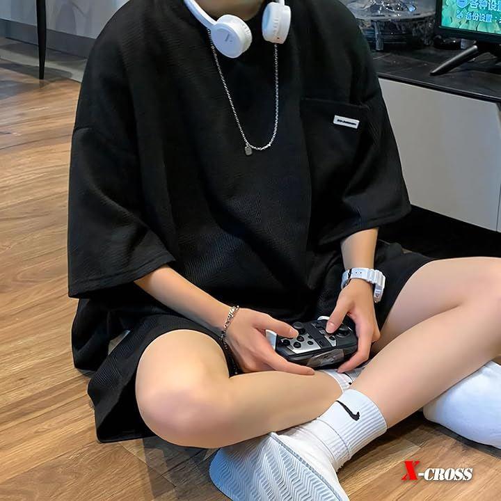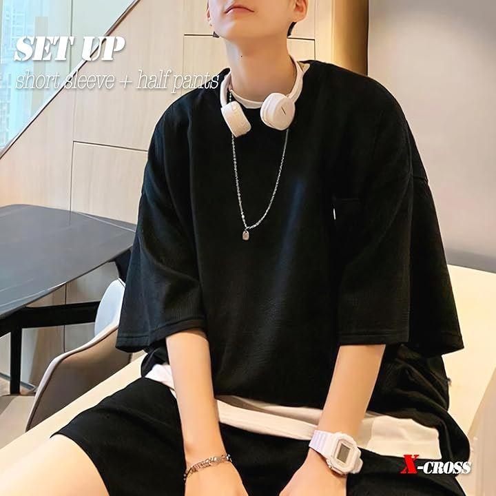 素材 ポリエステル 軽やかな素材で軽快にに動けるクルーネックシャツとハーフパンツのセットアップ。