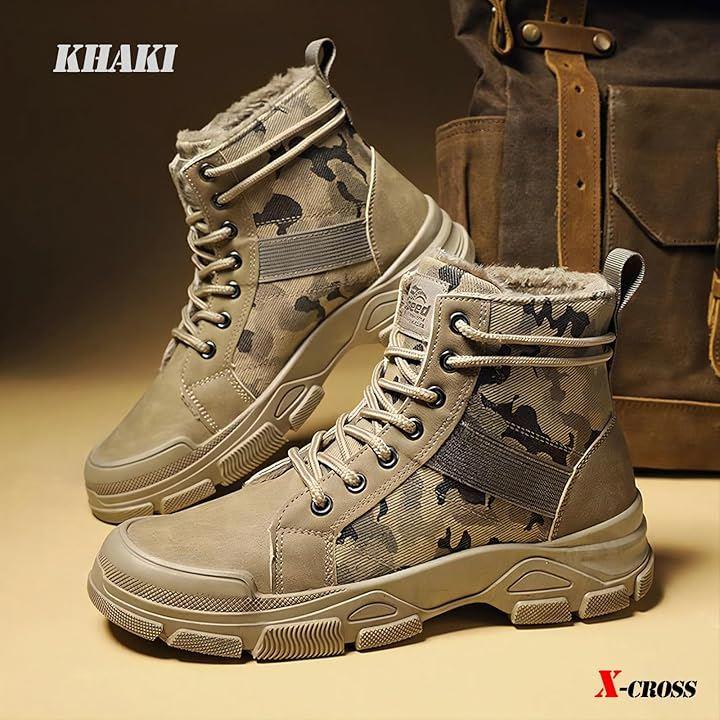 [X-cross(クロス)] ハイカットブーツ メンズ 防寒 迷彩 ミリタリーブーツ ボア 裏起毛 裏ボア スニーカー ショートブーツ カジュアル アウトドア ファッション おしゃれ かっこいい サバゲー アーミー 起毛 防寒靴 暖かい 冬 ウィンターブーツ 歩きやすい 靴 ウォーキング 通勤 通学 バイク 厚底 脚長 身長up 大きいサイズ 大人 キャンプ 釣り ウィンターブーツ 迷彩ブーツ *程よいボリュームのあるソールで、安定感もありながらスタイルも綺麗に見せでマルチに活躍するミリタリーブーツが登場しました。