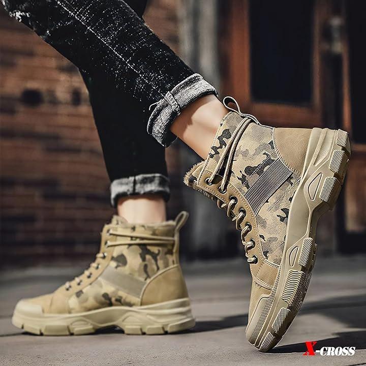 [X-cross(クロス)] ハイカットブーツ メンズ 防寒 迷彩 ミリタリーブーツ ボア 裏起毛 裏ボア スニーカー ショートブーツ カジュアル アウトドア ファッション おしゃれ かっこいい サバゲー アーミー 起毛 防寒靴 暖かい 冬 ウィンターブーツ 歩きやすい 靴 ウォーキング 通勤 通学 バイク 厚底 脚長 身長up 大きいサイズ 大人 キャンプ 釣り ウィンターブーツ 迷彩ブーツ *程よいボリュームのあるソールで、安定感もありながらスタイルも綺麗に見せでマルチに活躍するミリタリーブーツが登場しました。