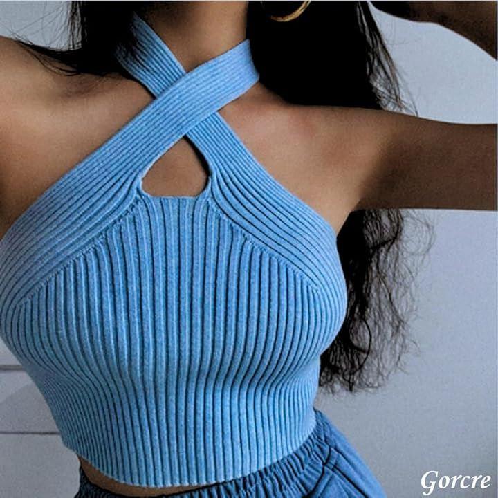 そのままでも、重ね着でも、それだけ1枚でセクシーに。サラッと伸縮ドライ素材のホルターネックキャミソールのお届けです。