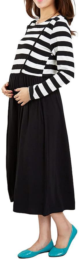 ・産前産後の気になる体型をしっかりカバーしてくれる、マキシ丈が嬉しいワンピース。