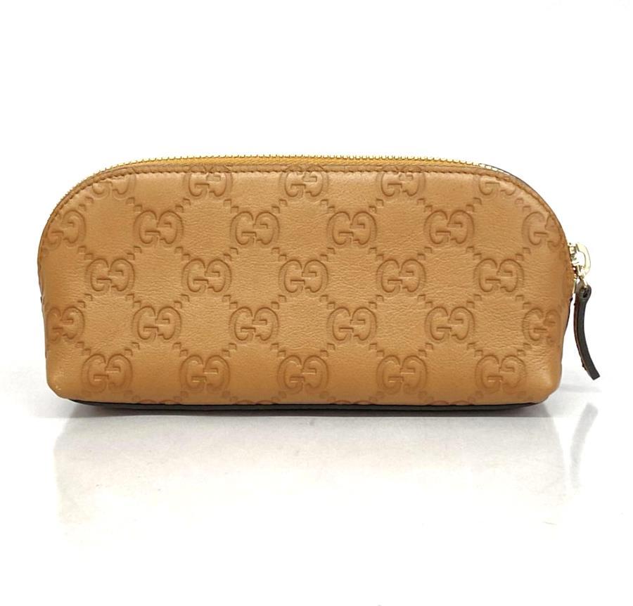 Gucci Shima 皮革化妝包、鉛筆盒、眼鏡盒,棕色,全新帶盒