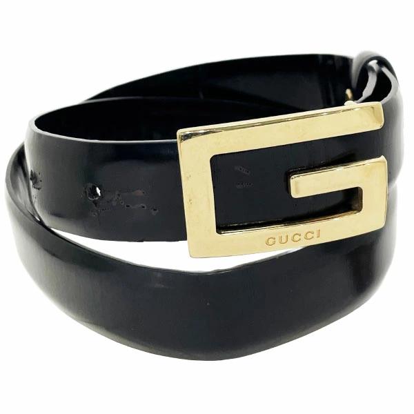 Pre-owned Gucci G logo women's belt, black leather with gold buckle, size 65cm, 036 1406, GUCCI G mark, G buckle, G hardware, apparel, fashion accessory, women's.