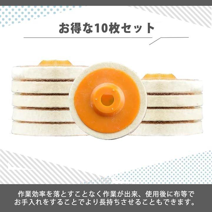 「商品詳細」使用用途:ディスクサンダーバフ セット数:超極細毛10枚 サイズ:直径100mm、穴の直径16mm、厚み8mm