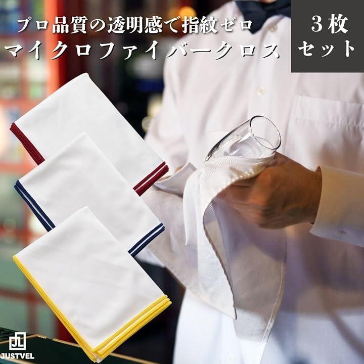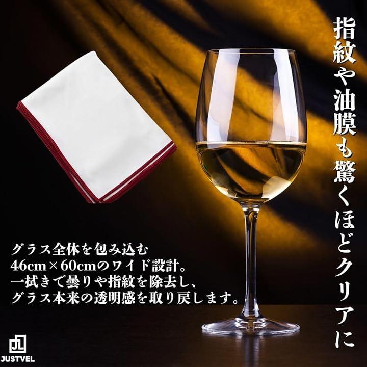 「プロ仕様の輝きを家庭でも」極細マイクロファイバーを使用したグラス専用クロスは、ワイングラスやクリスタルガラスの拭き上げに最適。