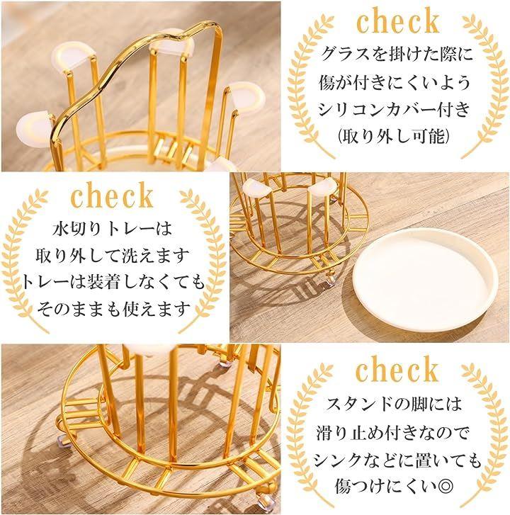 ・グラスやカップをまとめて6つ水切り出来るグラススタンドです。