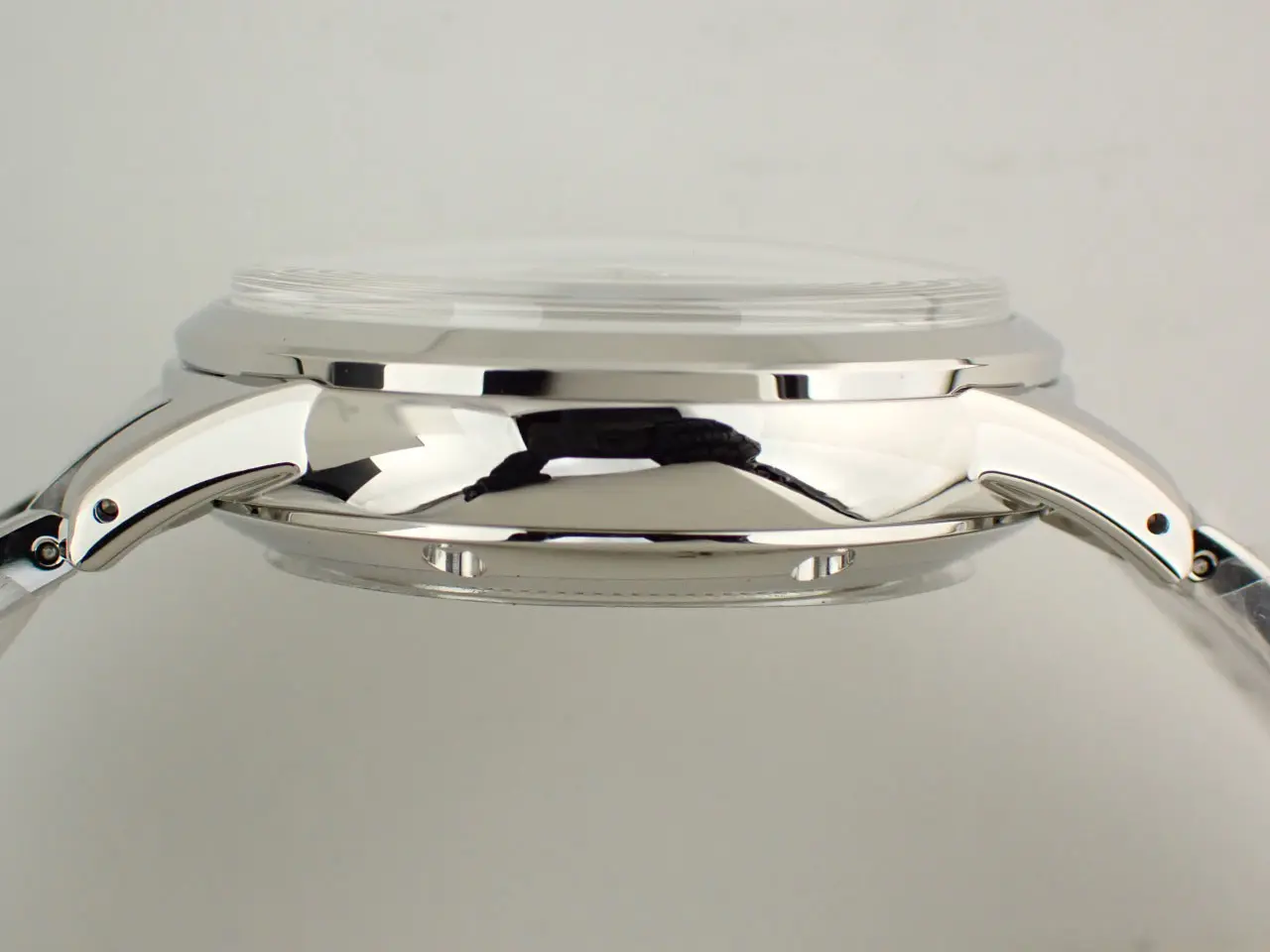 中古だが非常に綺麗な状態。時計本体やブレスのキズ等は光の角度により所々散見できる程度で、展示品・もしくは日常使用10回未満のような使用感がある状態。