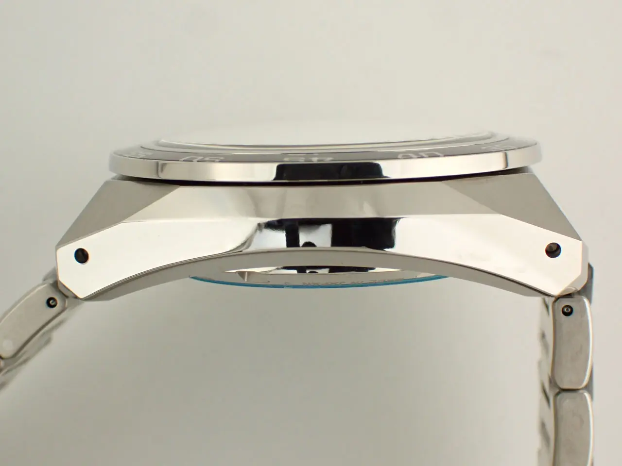 中古だが非常に綺麗な状態。時計本体やブレスのキズ等は光の角度により所々散見できる程度で、展示品・もしくは日常使用10回未満のような使用感がある状態。