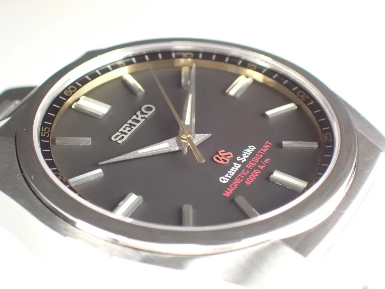 こちらは、2012年5月にわずか500本販売された数量限定モデル。どこまでも深みのあるブラックカラーのダイヤルに、細やかな線状の彫りが施された多面カットのインデックスがきらりと輝きます。秒針のゴールドが動く様はまるで夜空の月星です。レッドカラーで描かれたGSロゴと「MAGNETIC RESISTANT」も良いアクセントに。