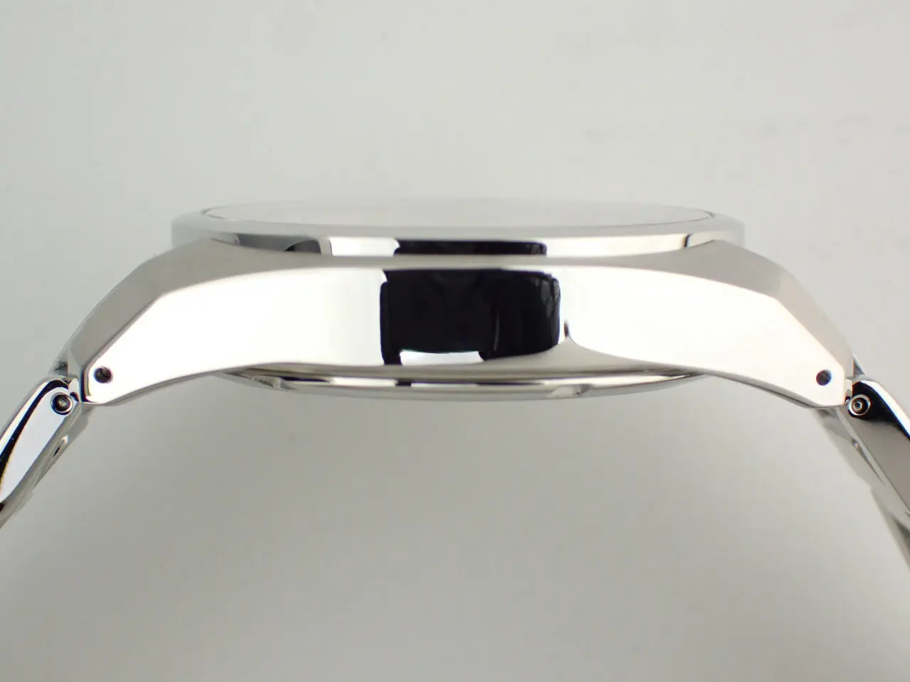 中古だが非常に綺麗な状態。時計本体やブレスのキズ等は光の角度により所々散見できる程度で、展示品・もしくは日常使用10回未満のような使用感がある状態。