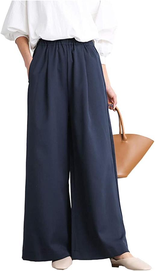 すらりと見える縦長のワイドパンツです。