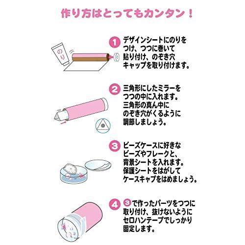セット内容 デザインシート・つつ・穴あきキャップ ミラー板3枚・ビーズケース・ビーズ ビーズケース・キャラクターフレーク ビーズケースキャップ・背景シートハサミ・カッターなしで手軽にできる、手作り万華鏡キット。自分だけのオリジナルの万華鏡を作ろう!!サイズ:H198×Φ49mm(引き手含まず) パッケージサイズ:H185×W110×D50mm材質:PVC・紙生産国:中国 サイズ:H198×Φ49mm(引き手含まず) パッケージサイズ:H185×W110×D50mm 材質:PVC・紙 生産国:中国