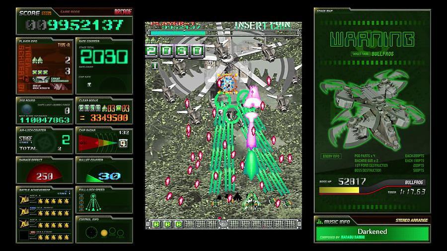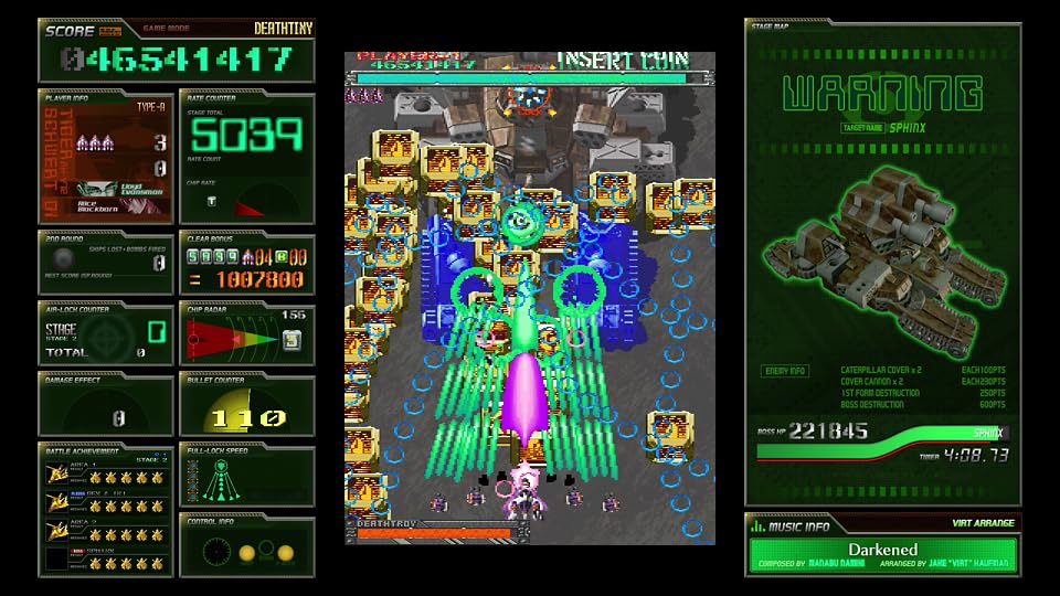 BGM セット「VIRT ARRANGE」『シャンティ』シリーズや『ショベルナイト』の BGM を手掛けた Jake “virt" Kaufman 氏によるアレンジです。Xbox 360 用『怒首領蜂大復活ブラックレーベル』のアレンジモード向けに作られた楽曲ですが、この度初めて VIRT 氏の曲で『ケツイ』が遊べる運びとなりました。