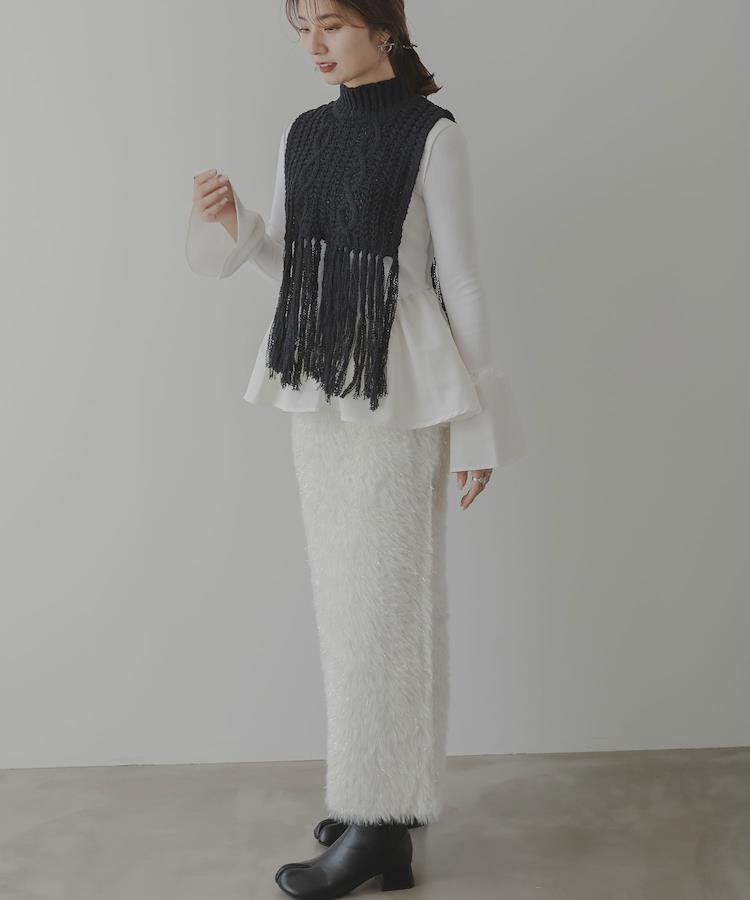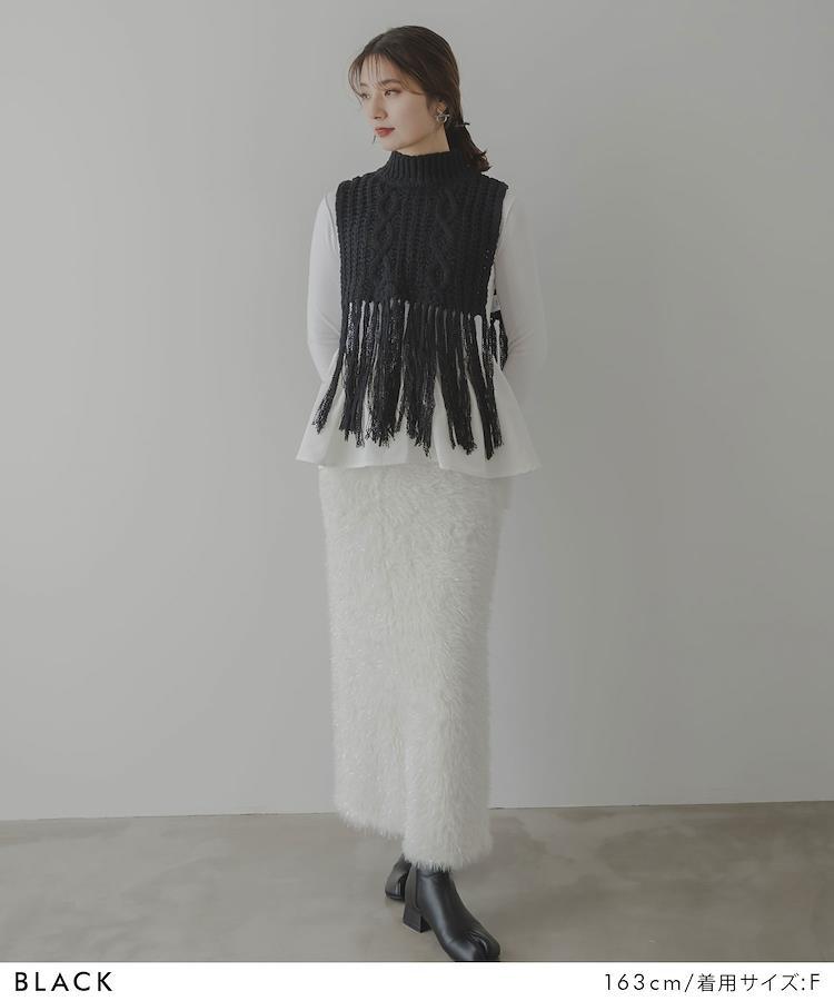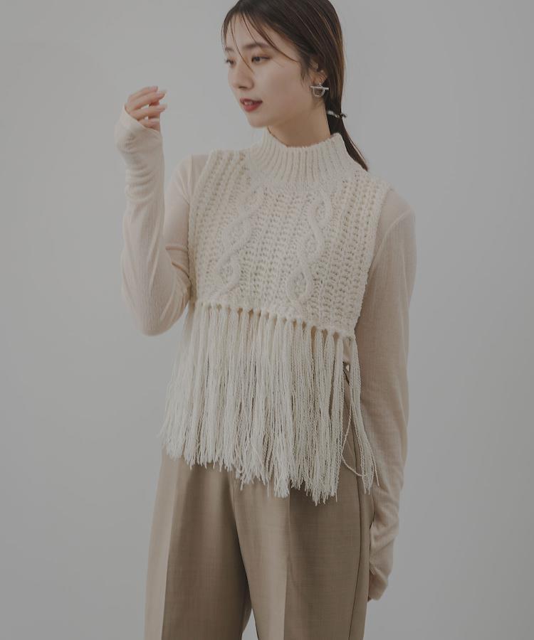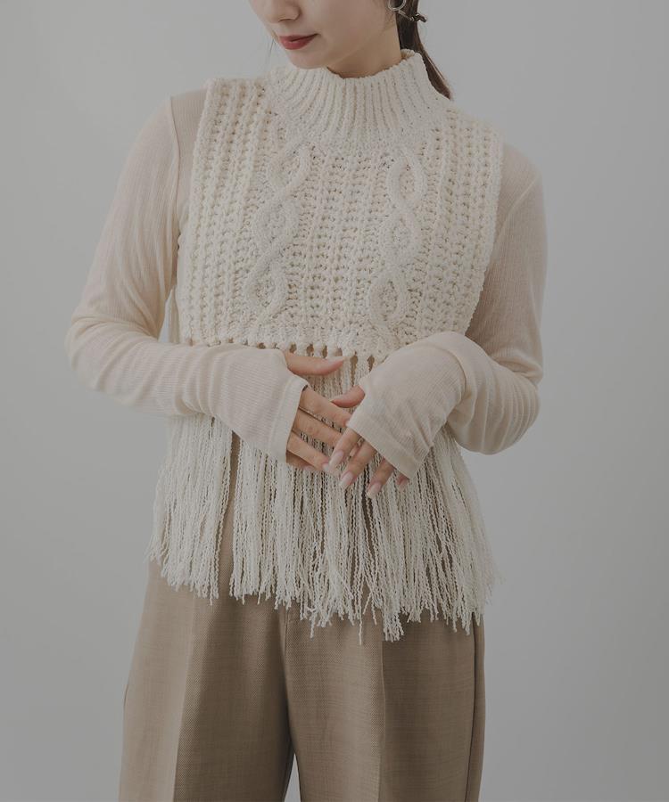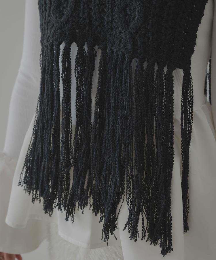 裾にかけて大胆に施されたフリンジがポイントのデザインベスト。